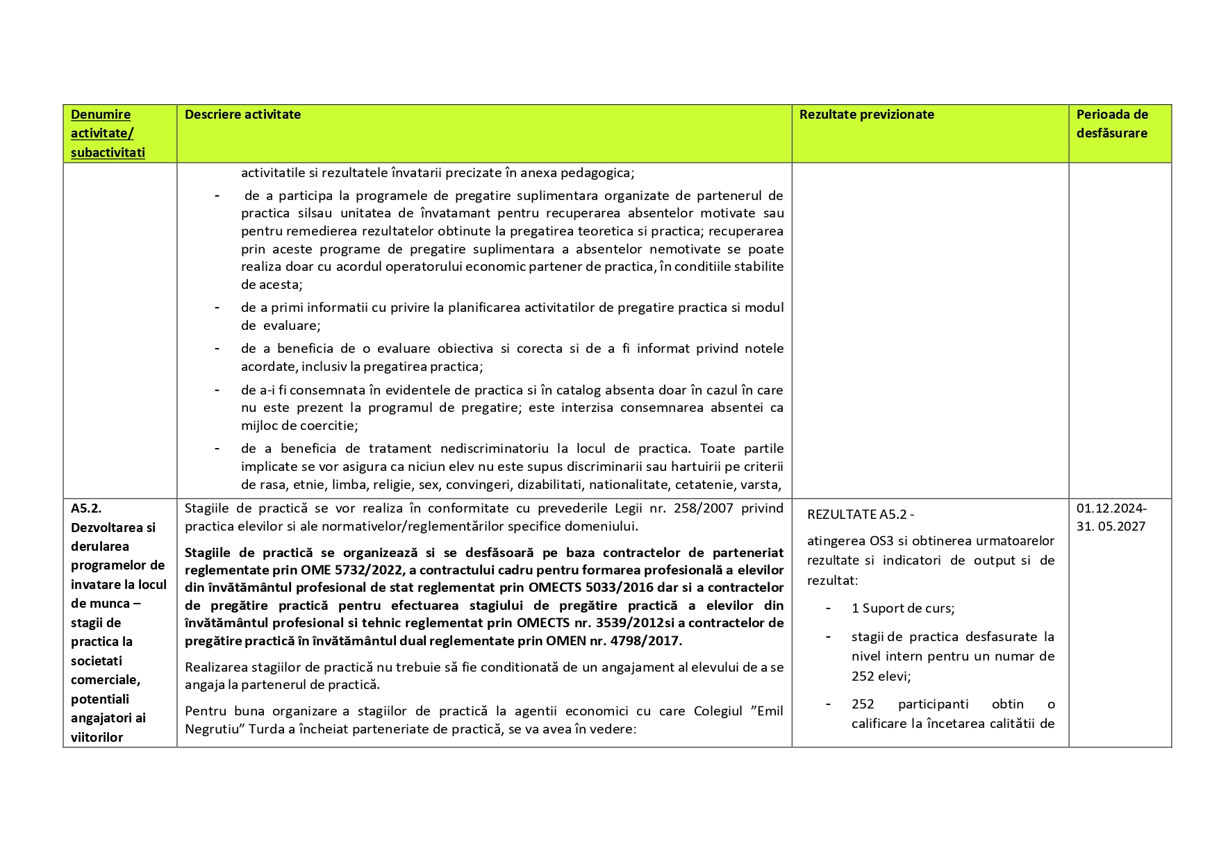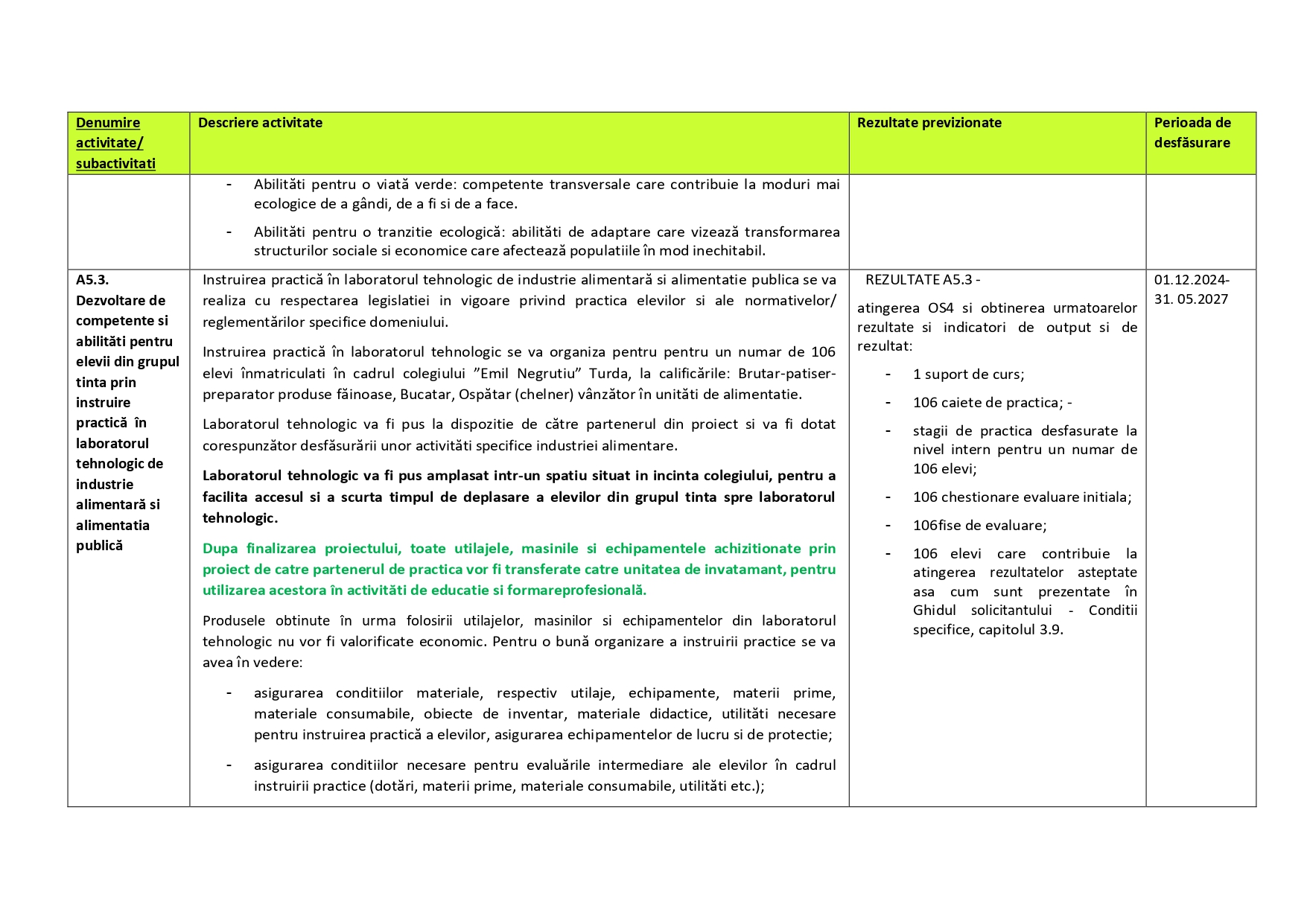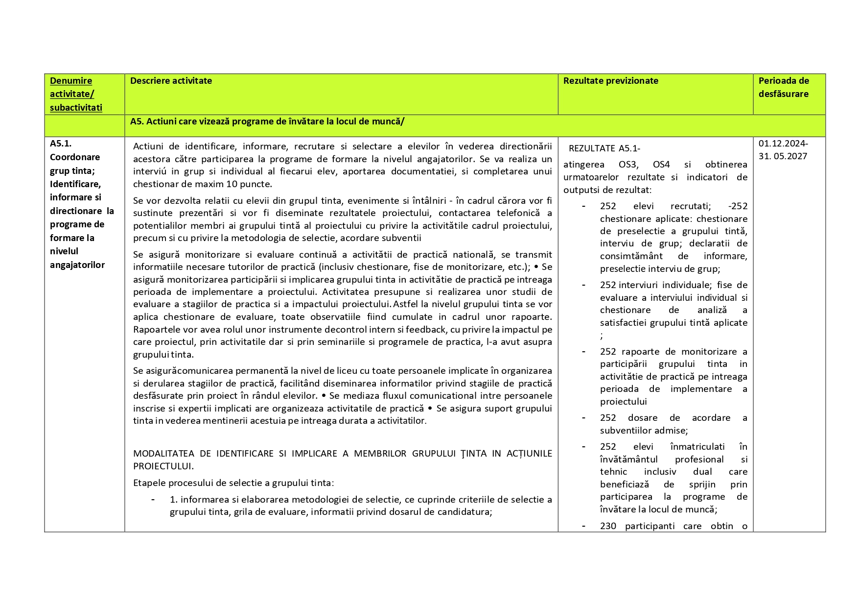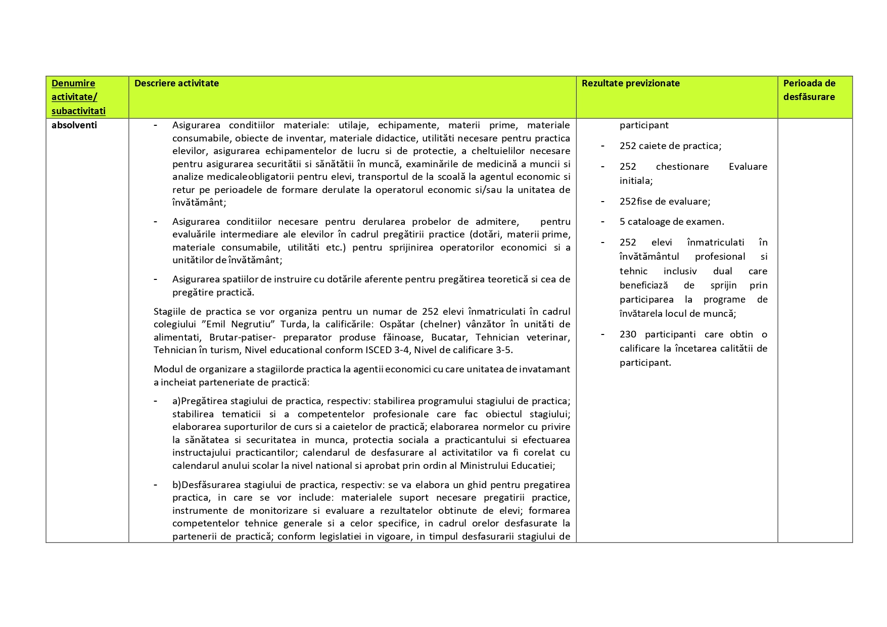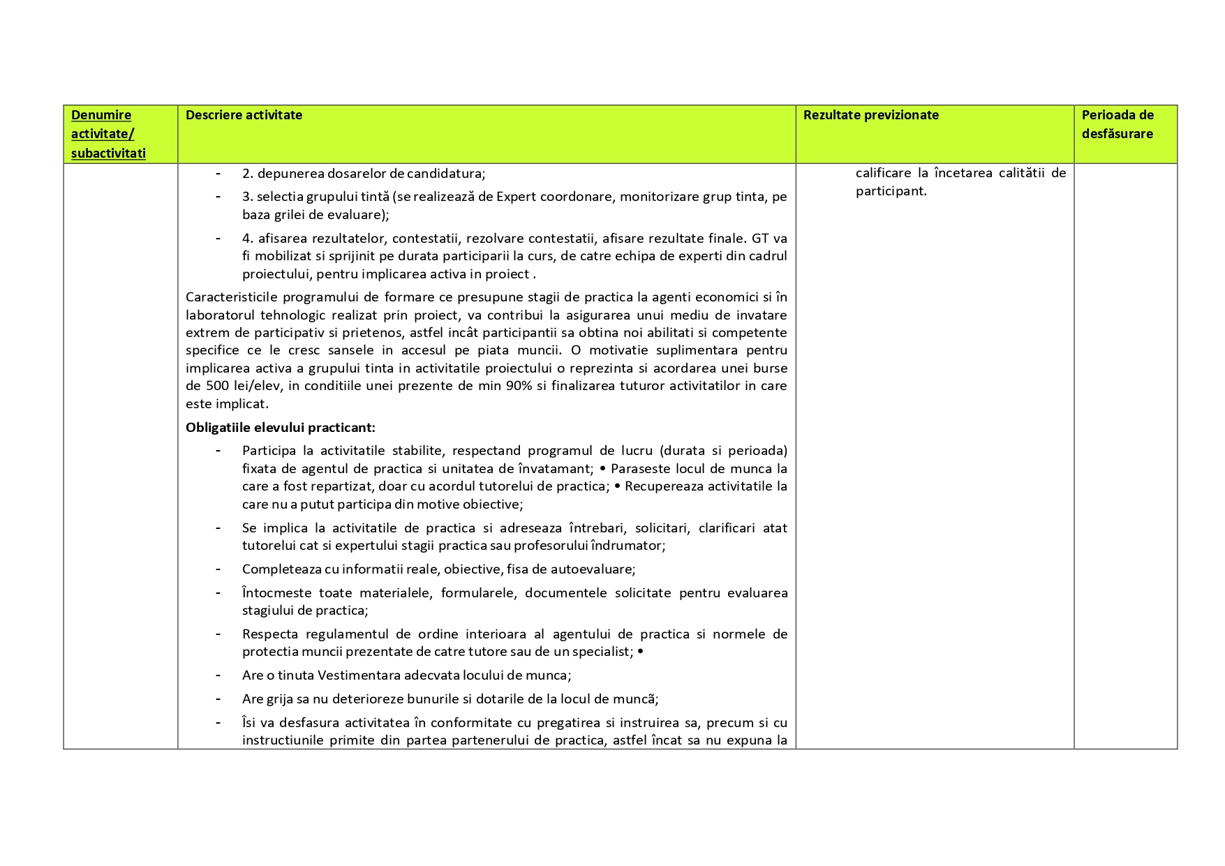 Descriere activitati eligibile